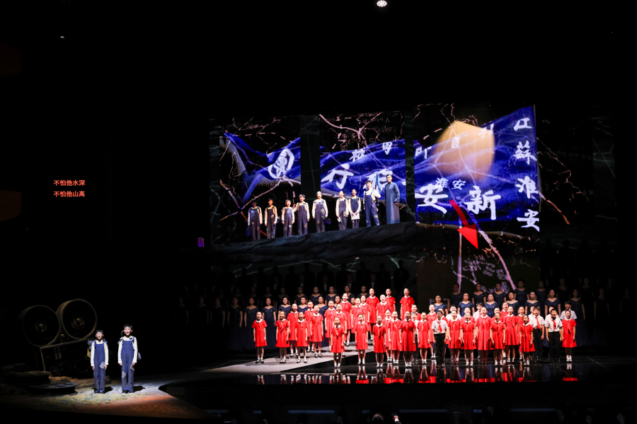 1935年,江苏淮安新安小学的14名少年儿童组成“新安旅行团”,以文艺为武器踏上抗日救亡之路。历时十七载、行程五万里,这支队伍从最初的14人壮大到600余人,成为“民族解放的小号手”。昨晚,上海歌剧院全新创排的大型交响合唱《新旅》在上音歌剧院首演,将这段波澜壮阔的红色历程搬上舞台,在音乐中完成跨越90年的时空对话,用歌声与乐声构筑起五万里征程的精神回响。