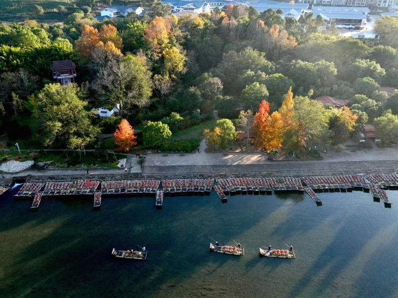 这是11月30日拍摄的福建武夷山九曲溪竹筏码头附近景色(无人机照片)。 新华社记者 姜克红 摄