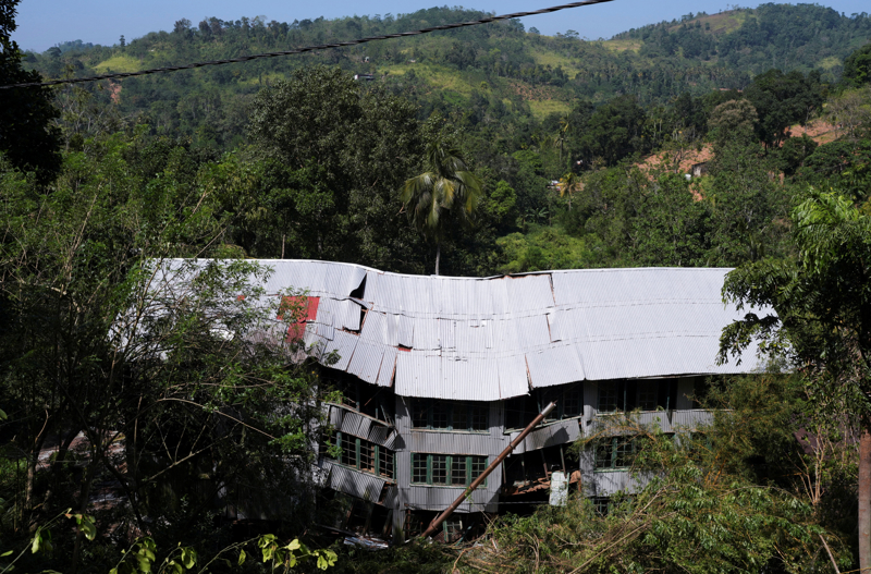 这是12月2日在斯里兰卡康提拍摄的一幢因山体滑坡而受损的房屋。