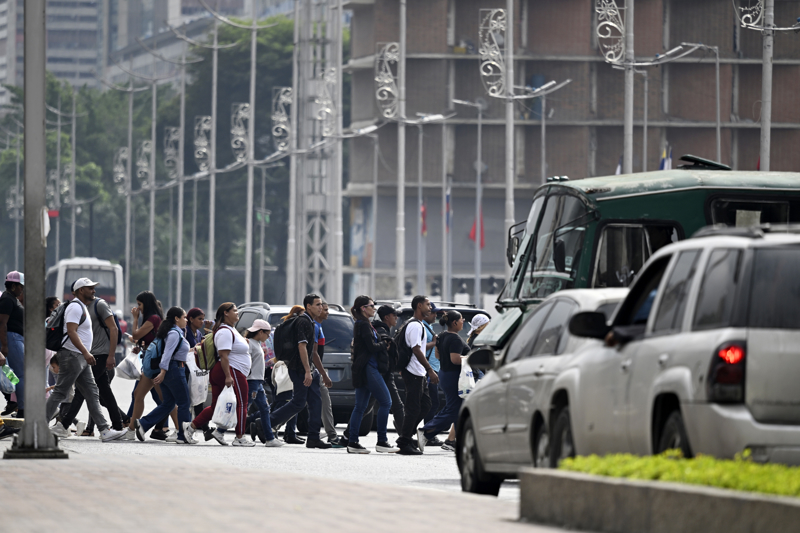 12月2日,在委内瑞拉首都加拉加斯,行人在早高峰时段穿过玻利瓦尔大街。 新华社记者 李木子 摄