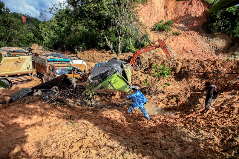 12月2日,在斯里兰卡康提,人们在山体滑坡现场附近寻找幸存者和丢失的财物。